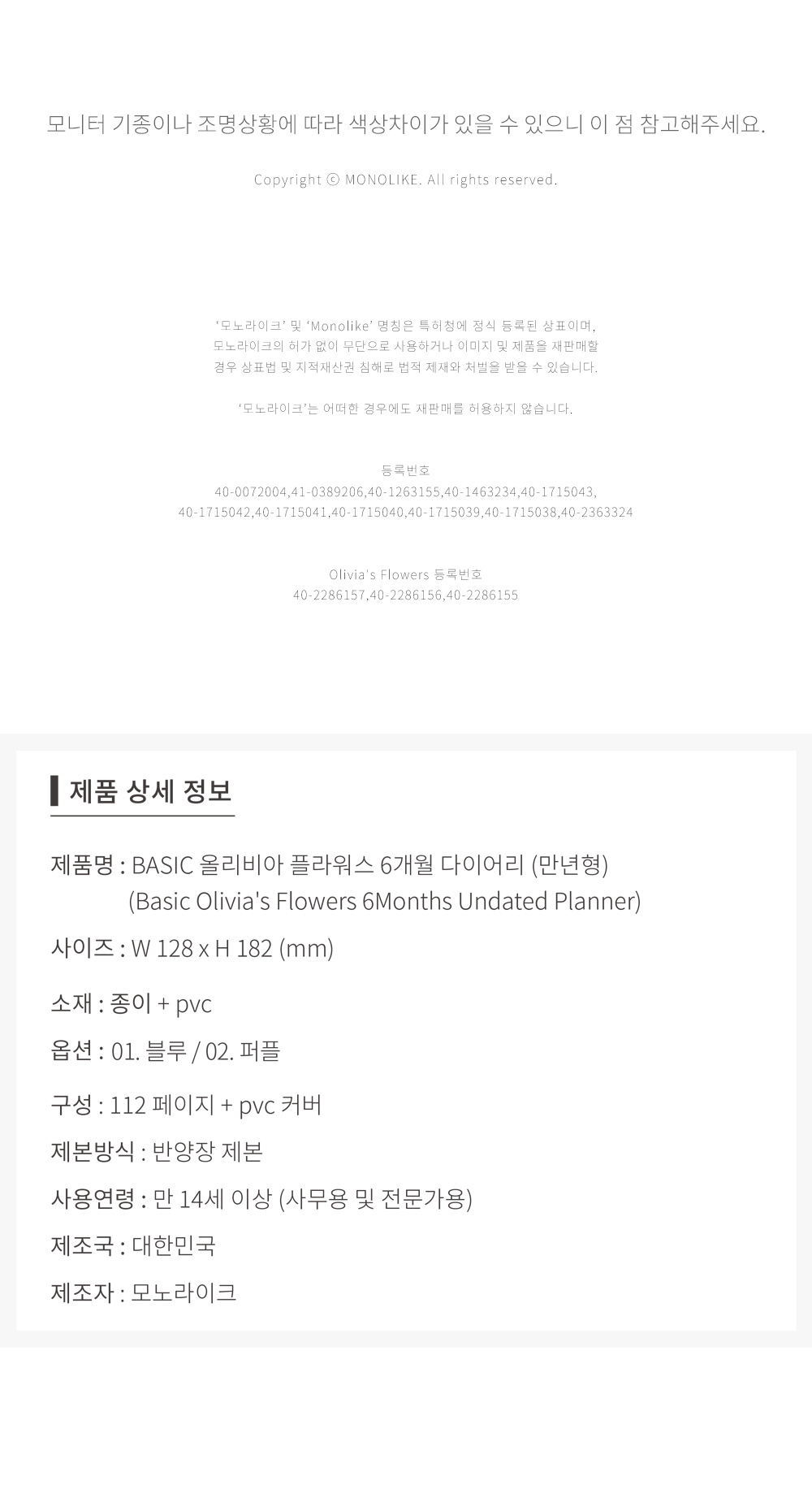 ǰ¸í ¹× ¸ðµ¨¸í [PVCÄ¿¹ö Æ÷ÇÔ] BASIC ¿Ã¸®ºñ¾Æ Çöó¿ö½º 6°³¿ù ´ÙÀ̾ (¸¸³âÇü)